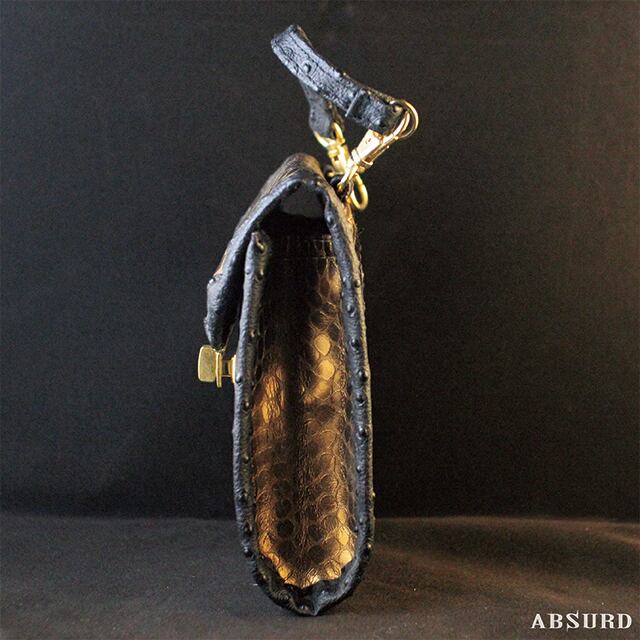 【1点物】【受注制作】 ABSURD オーダーメイド ポーチ カバン 鞄 オリジナル カッパー ヘビ柄 オーストリッチ パイピング フェイクレザー ベルトループ アブサード SNOWKIN Jr(CB)