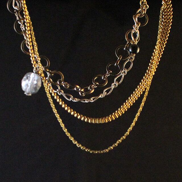 オーバルブリリアントカットの大ぶりビーズとブラックの樹脂パールが付いています。