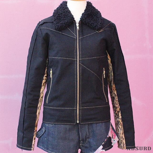 【数量限定!】 ABSURD ジャケット レディース ドカジャン 金 ステッチ 豹 ヒョウ柄 GOLD ボア 個性的 黒 BLACK アブサード Hands Up