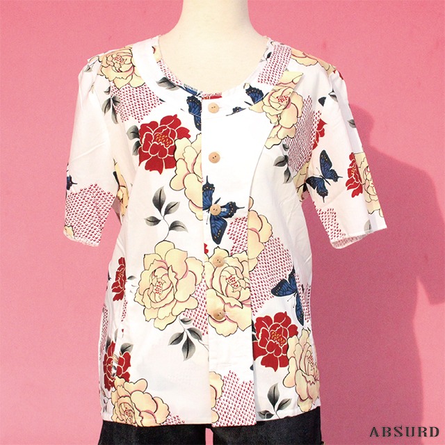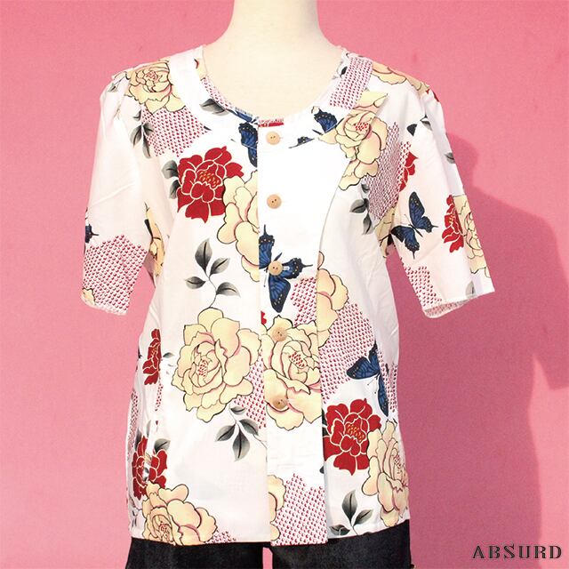 【数量限定!】 ABSURD 鯉口シャツ メンズ レディース サイズS 両サイドポケット 柄 白 WHITE アブサード SHEATH MAN-2-